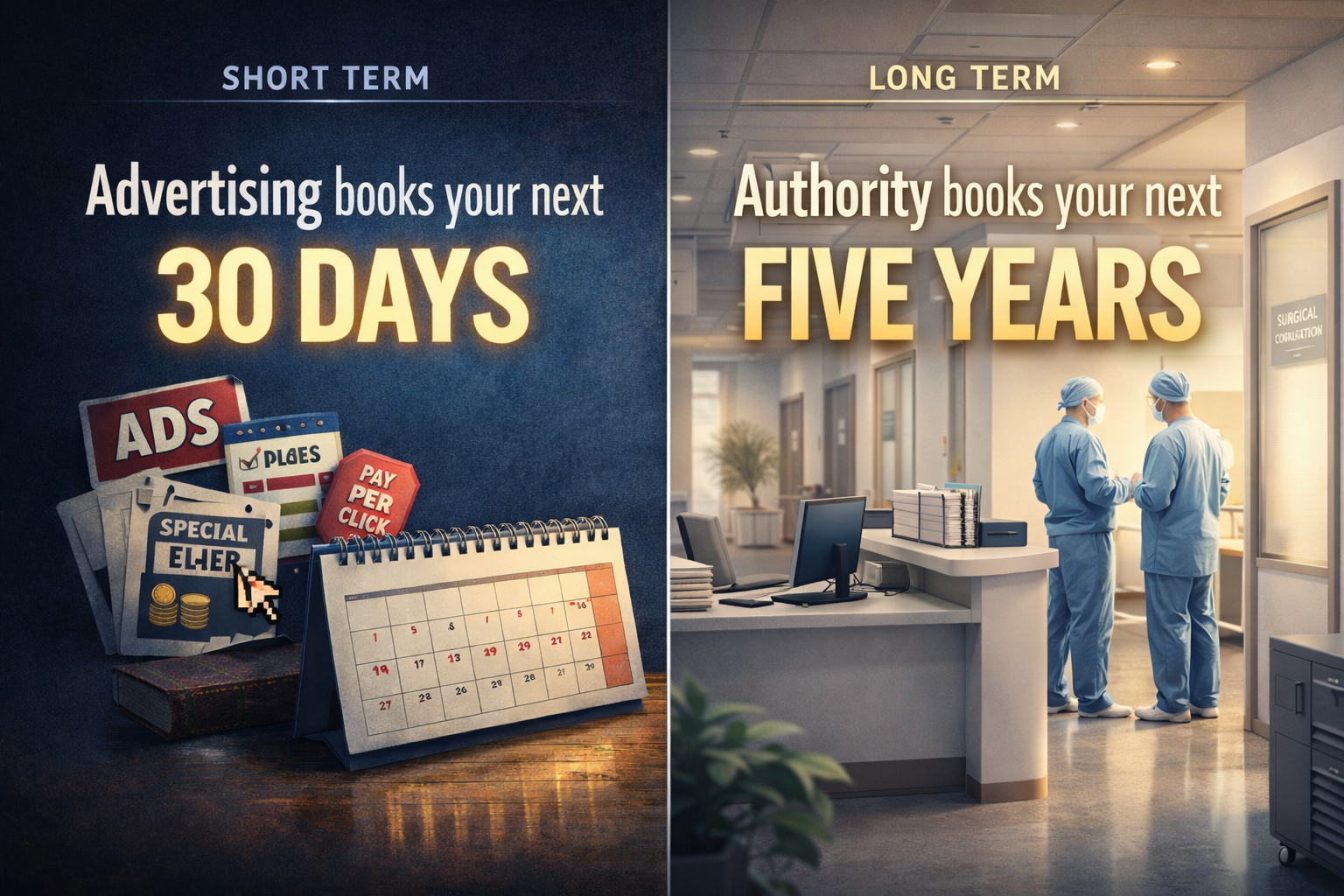 - Authority builds long-term positioning. It continues influencing patient decisions long after the initial work is done.