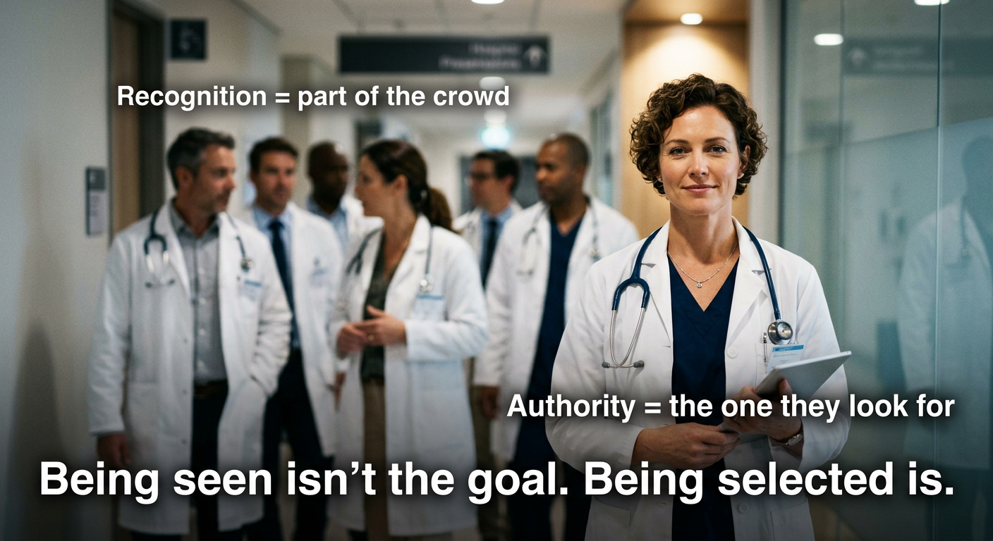 - Discovery is not Positioning. Being found during a search is a competitive disadvantage; being recognized before the search is a structural win.